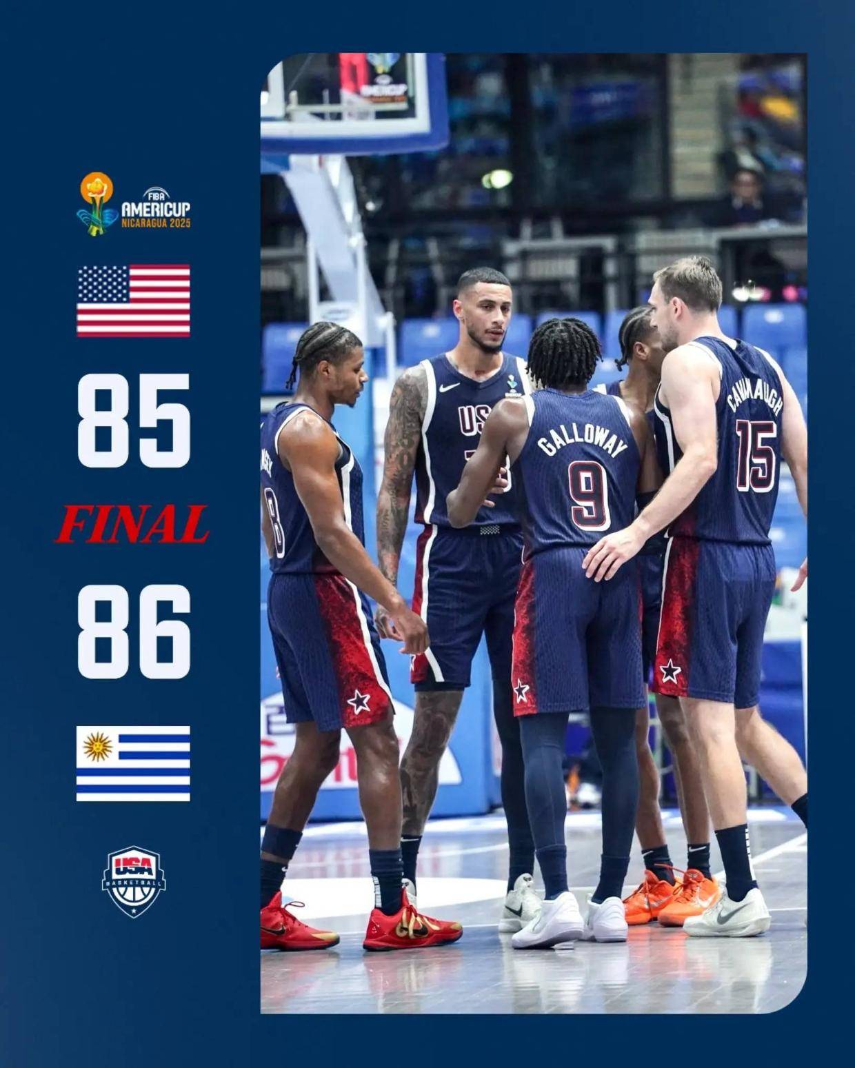 北京时间2025年8月25日,美洲杯男篮小组赛,乌拉圭86-85爆冷险胜美国。